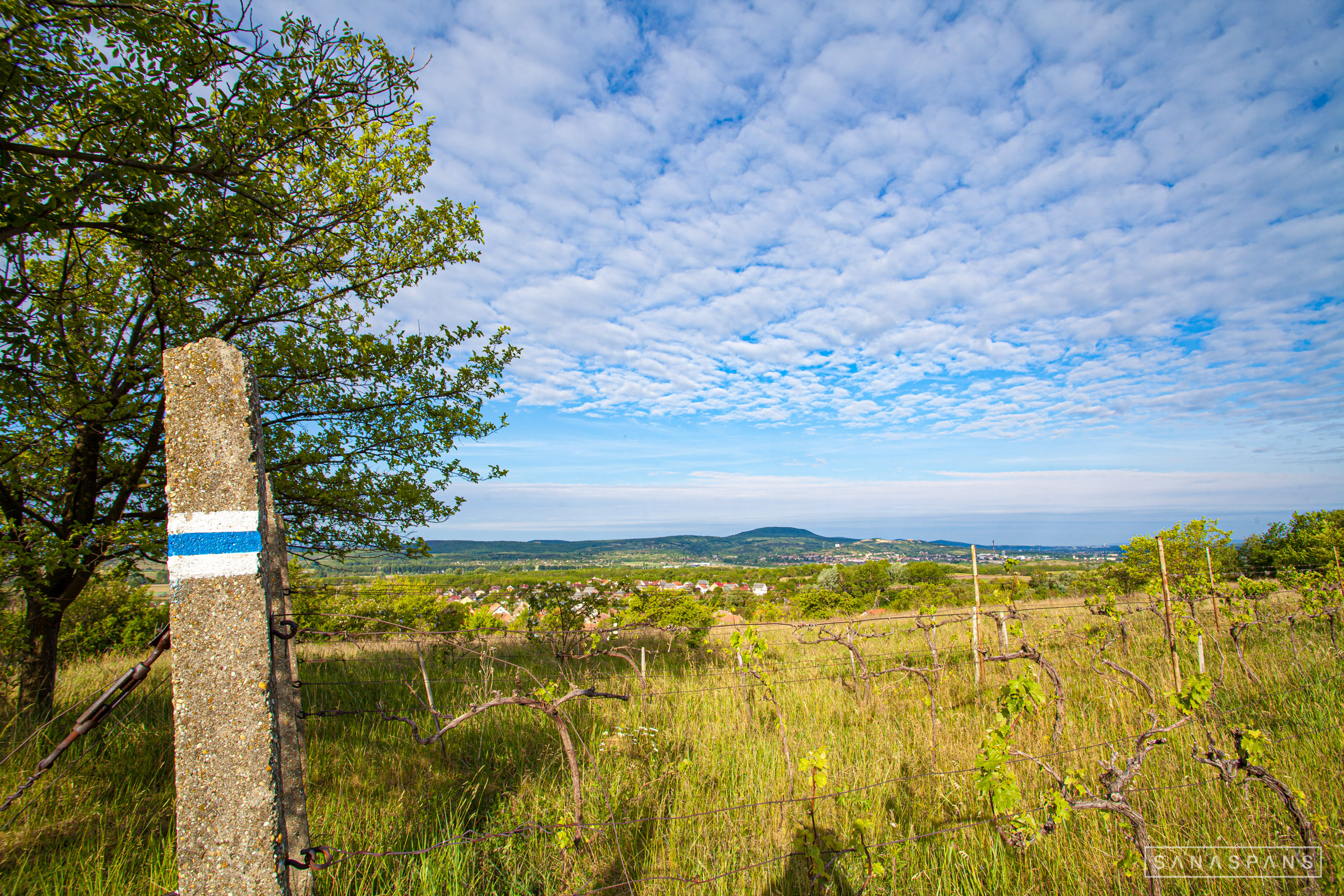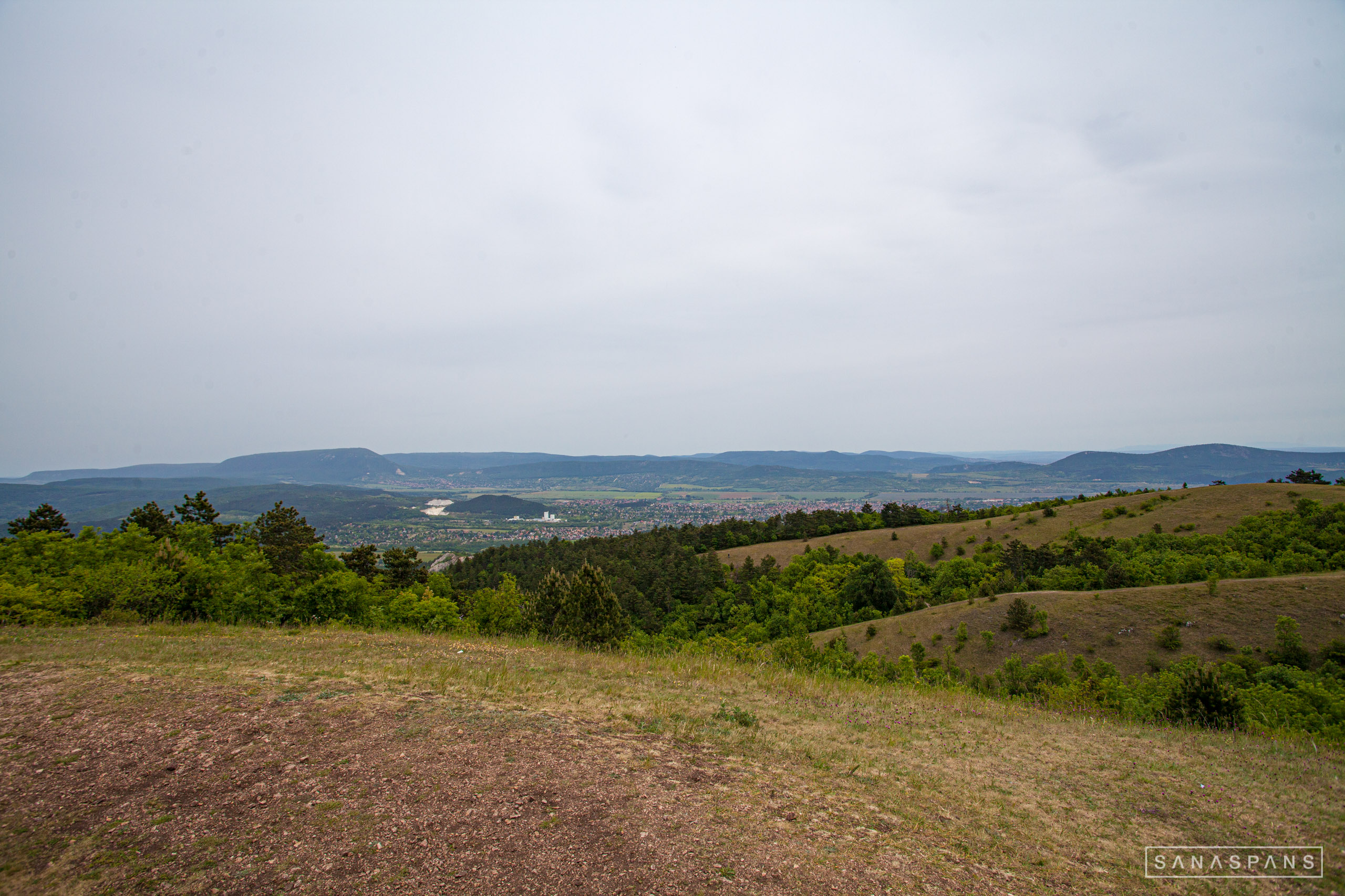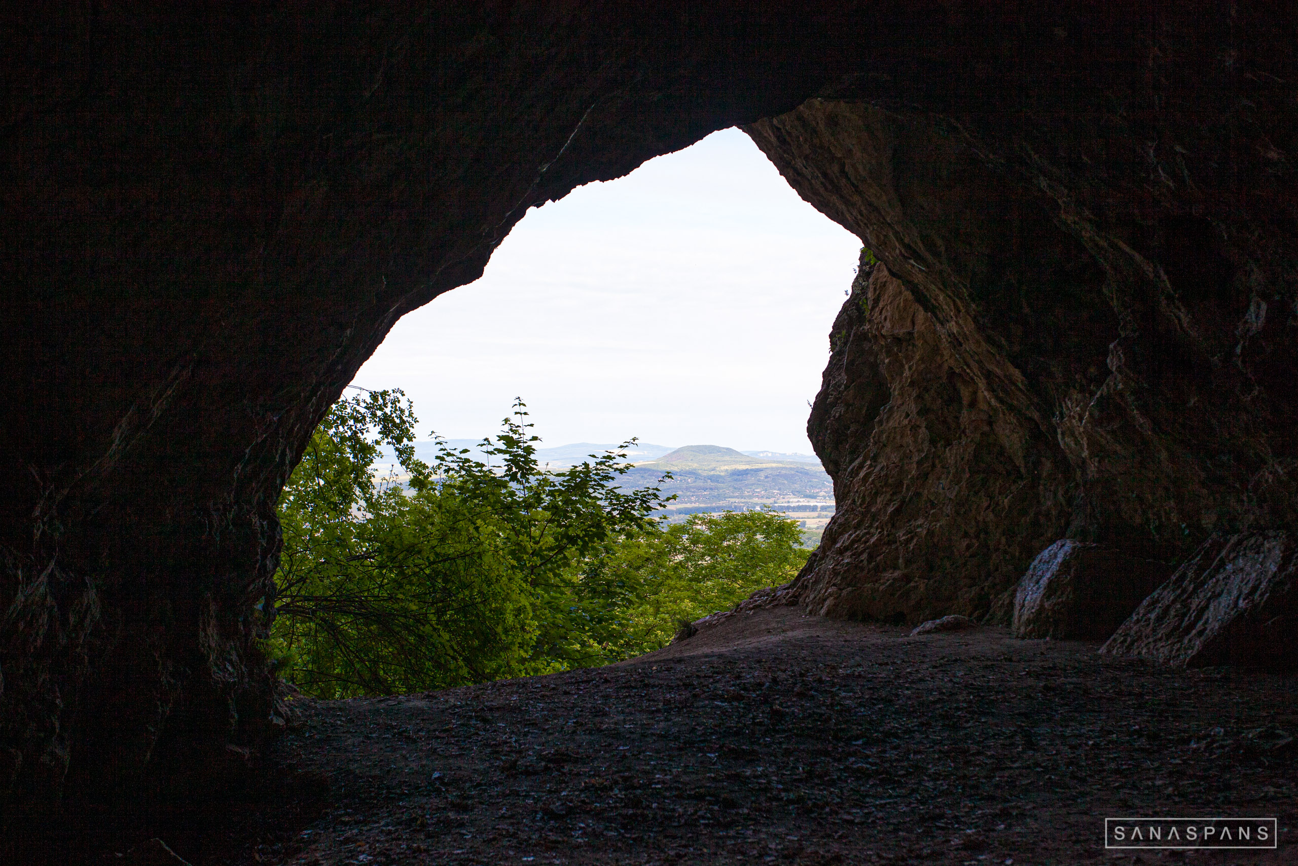 Úton Klastrompuszta irányába kiváló kilátás nyílt mind az előttem álló, mind az előző túrán megtett utamra. Klastrompusztáig egy kis emelkedőt kell megtenni, ami a reggeli bemelegítő futamnak pont jó is volt. Pecsételés után felmentem a közeli barlangokhoz és bekukkantottam az egyikbe. Szuper kilátása volt innen az itt lakó ősembereknek. Egyébként állítólag ezekben a barlangokban pénzhamisítók is működtek a középkorban.