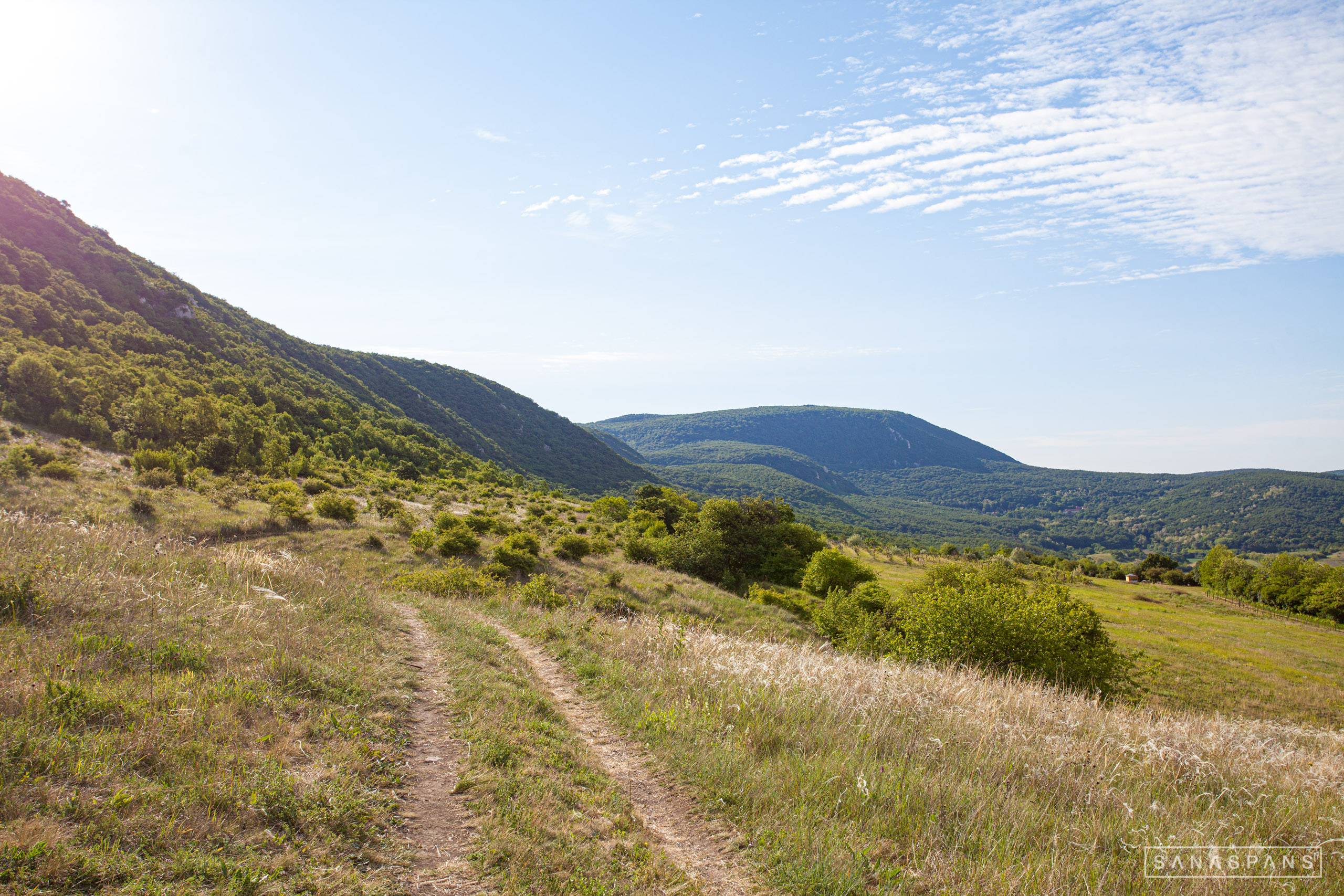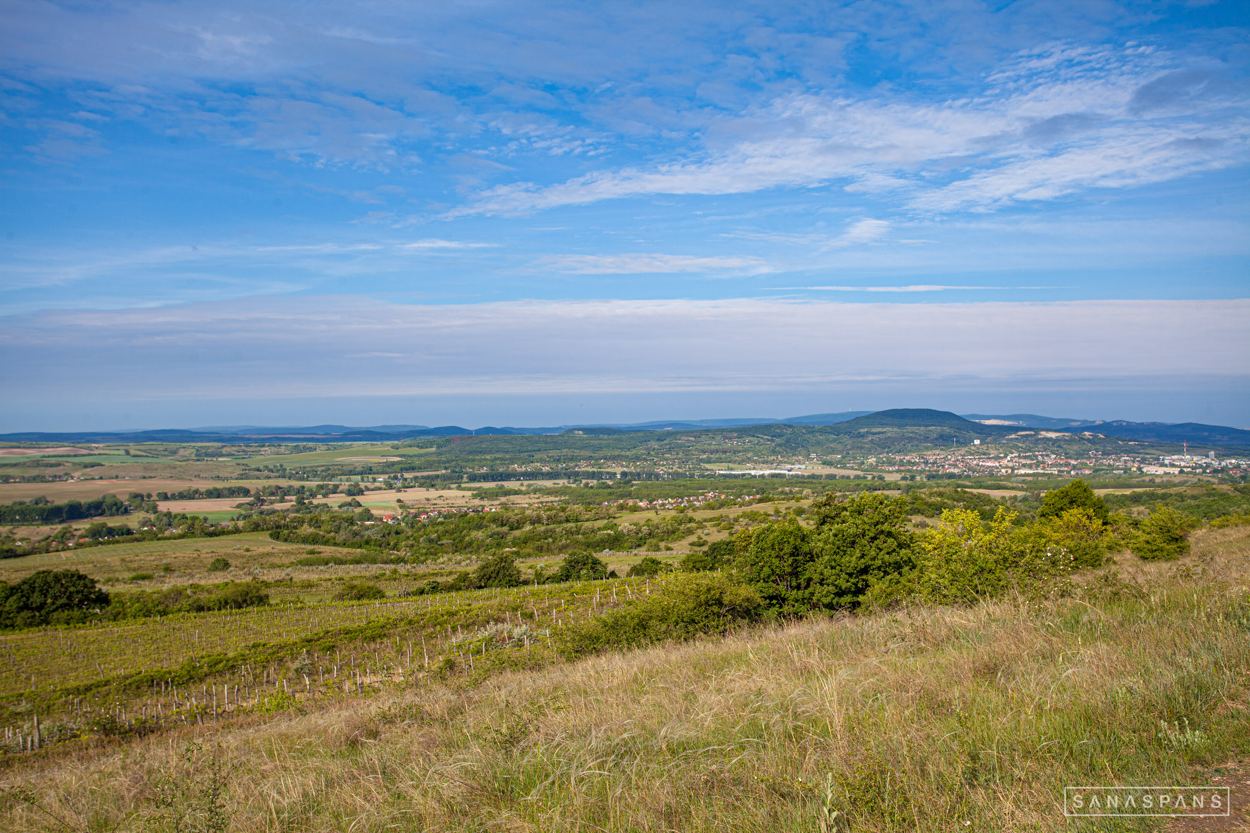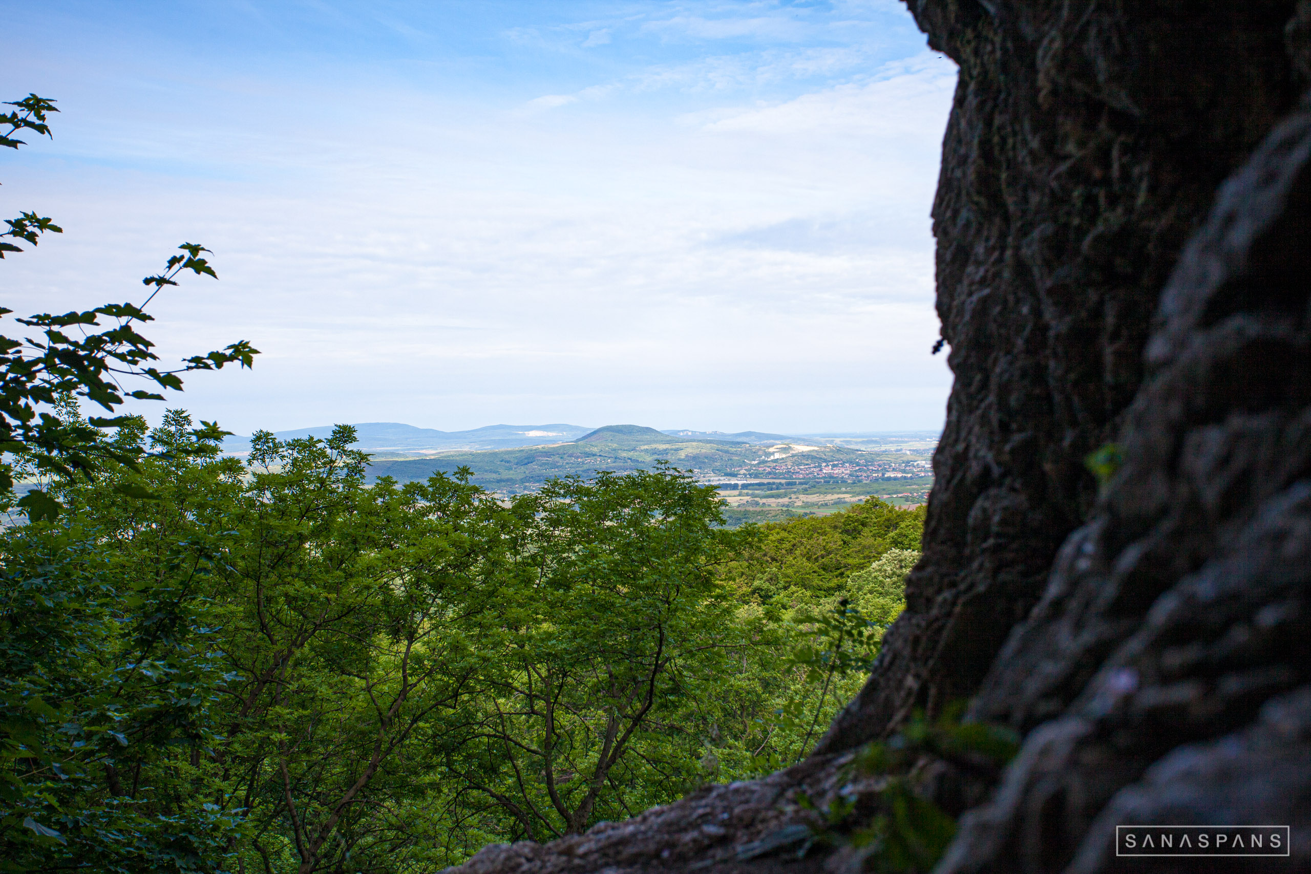 Úton Klastrompuszta irányába kiváló kilátás nyílt mind az előttem álló, mind az előző túrán megtett utamra. Klastrompusztáig egy kis emelkedőt kell megtenni, ami a reggeli bemelegítő futamnak pont jó is volt. Pecsételés után felmentem a közeli barlangokhoz és bekukkantottam az egyikbe. Szuper kilátása volt innen az itt lakó ősembereknek. Egyébként állítólag ezekben a barlangokban pénzhamisítók is működtek a középkorban.