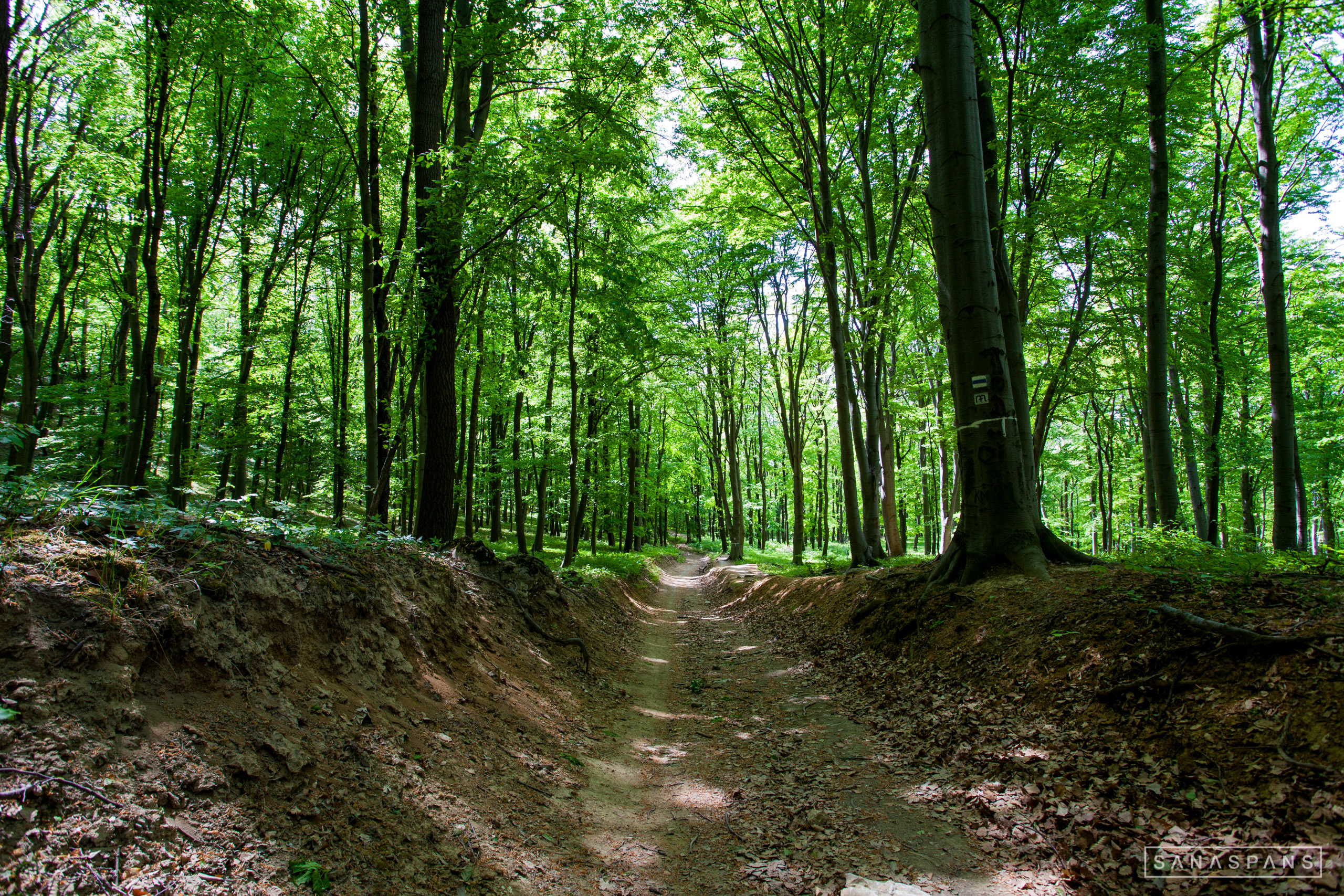 Pecsételés után aztán megkezdődött a tartós emelkedés (szintén földúton) a Bányahegyi erdészház pecsételőhelyen keresztül a Gerecsére. Mivel hosszú út állt még előttem, jó pár hegymenettel, nem volt kedvem felmenni a Gerecse tetejére, de azért egy-két szép kilátási pont így is akadt útközben.