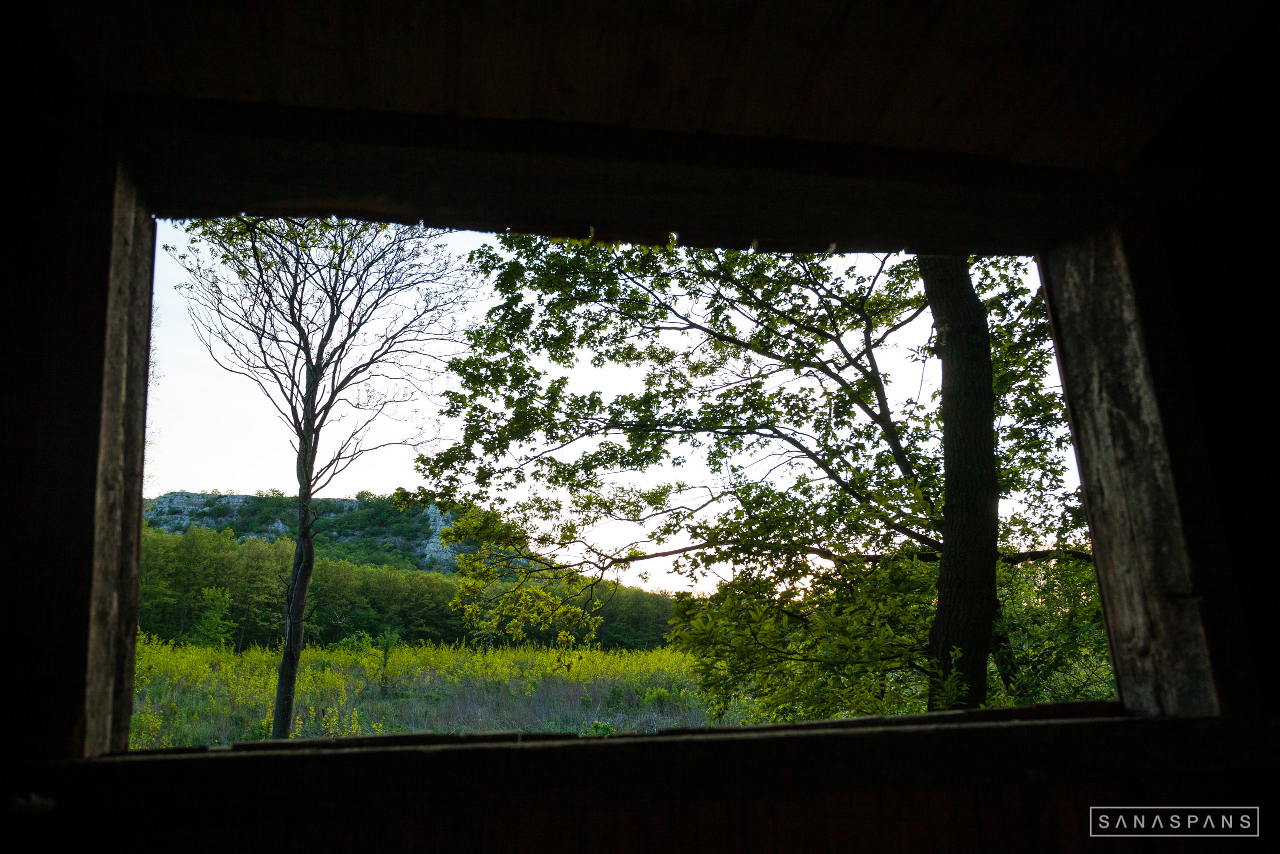 Már kezdtem azon gondolkozni, hogy hol üssem fel a sátorponyvámat, amikor a messziben, valahol keleten borús felhők kezdtek gyülekezni, így megnéztem gyorsan a meteorológiai jelentést, ami másnapra zivatart (azaz lehetséges villámlást is) jelzett. Bukó, gondoltam, mehetek az esőbeállóba, ami környékén tuti, hogy valamilyen vadak vonulnak esténként. Ekkor láttam meg a völgyben egy tisztás mellett egy egész újszerűnek tűnő, fedett magaslest. Irány.